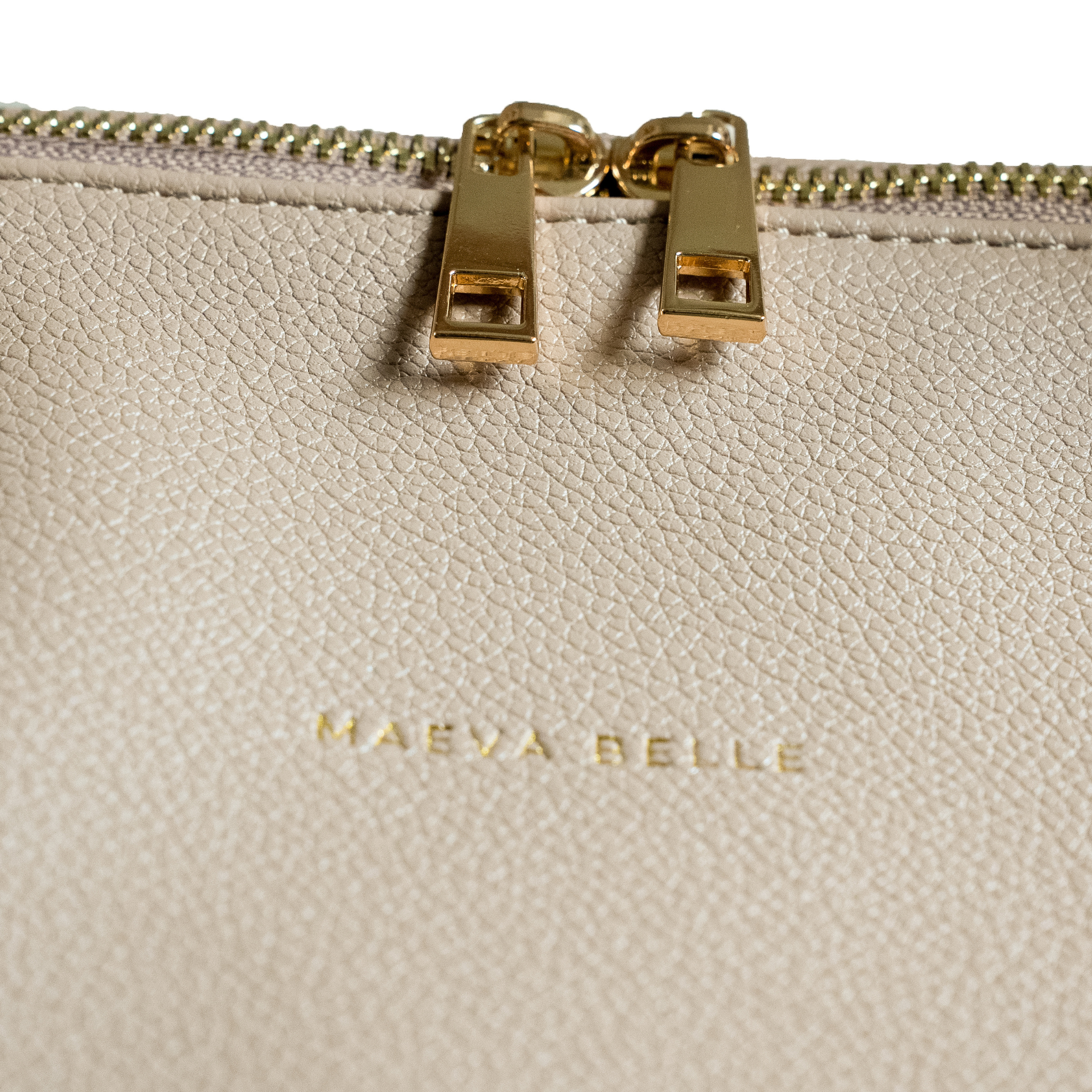 De Maeva Belle Luiertas is de ideale luiertas voor ouders die zowel stijl als functionaliteit zoeken. Gemaakt van hoogwaardig veganistisch microfiber leer, biedt de tas een luxe uitstraling en is gemakkelijk in onderhoud. De slimme indeling zorgt ervoor dat je altijd alles binnen handbereik hebt, van luiers en flesjes tot je persoonlijke essentials.