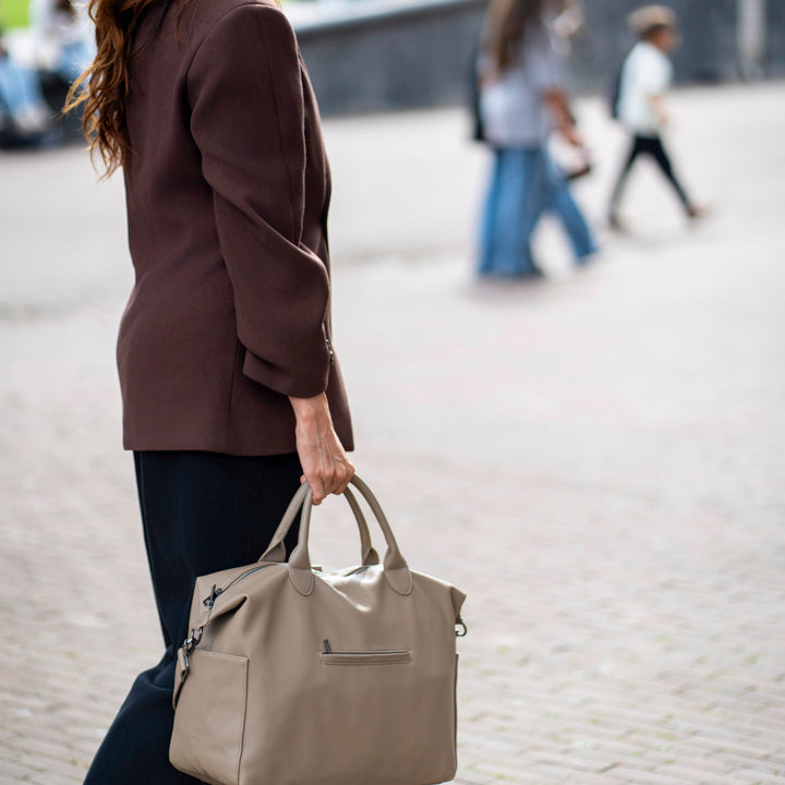 The inside of our diaper bag is not only stylish with gold details, but also super practical with smart compartments for all your baby essentials.